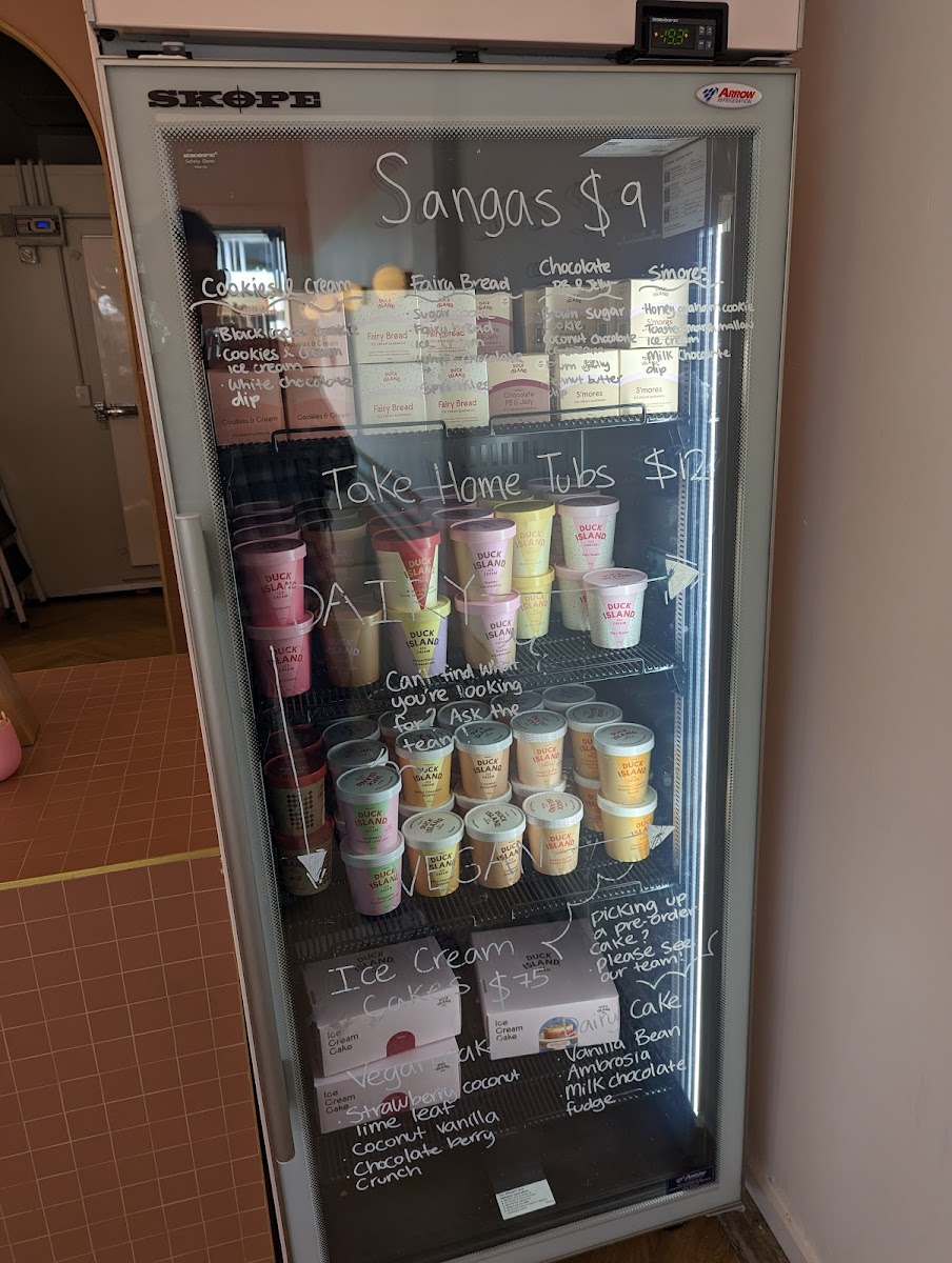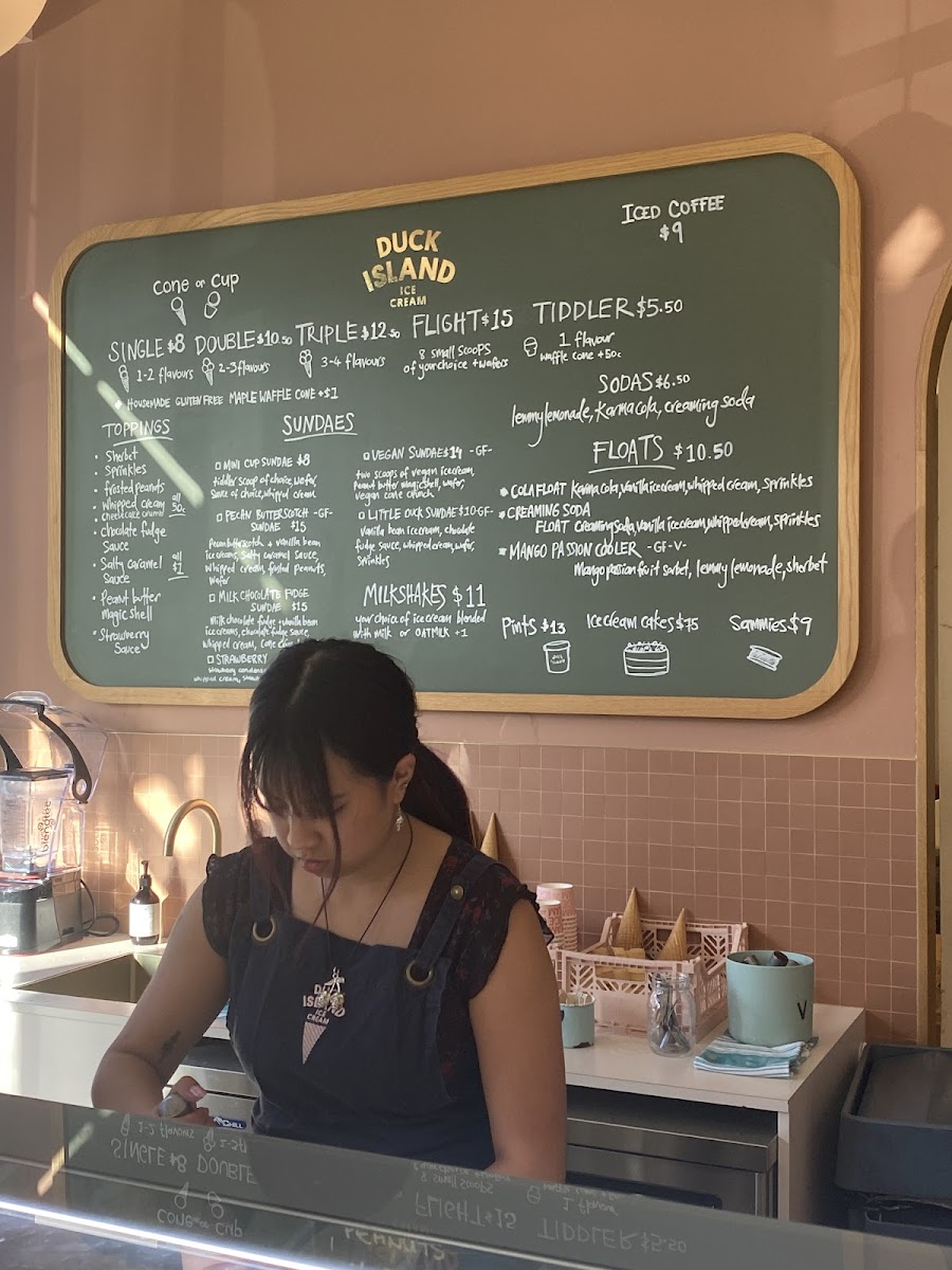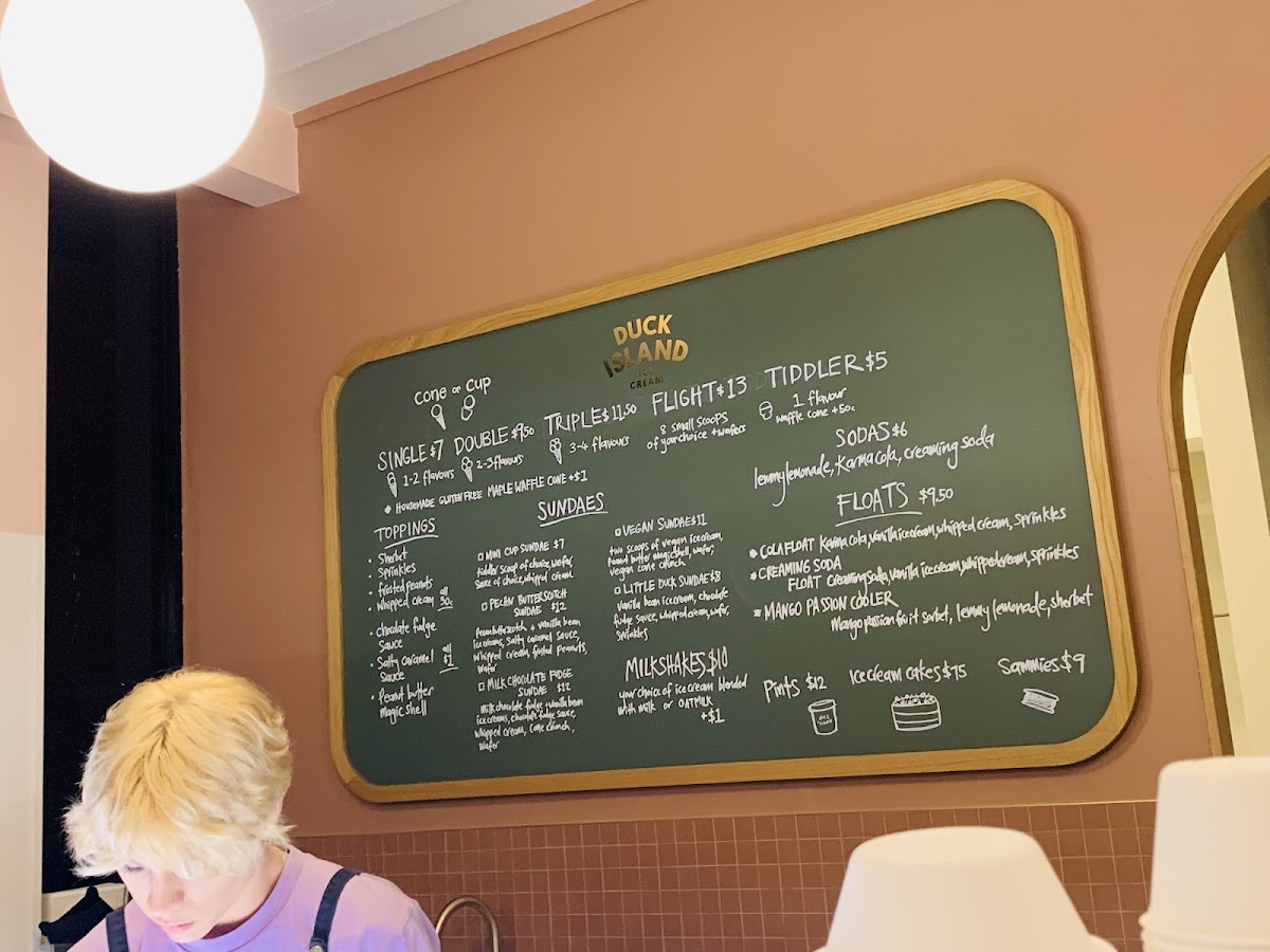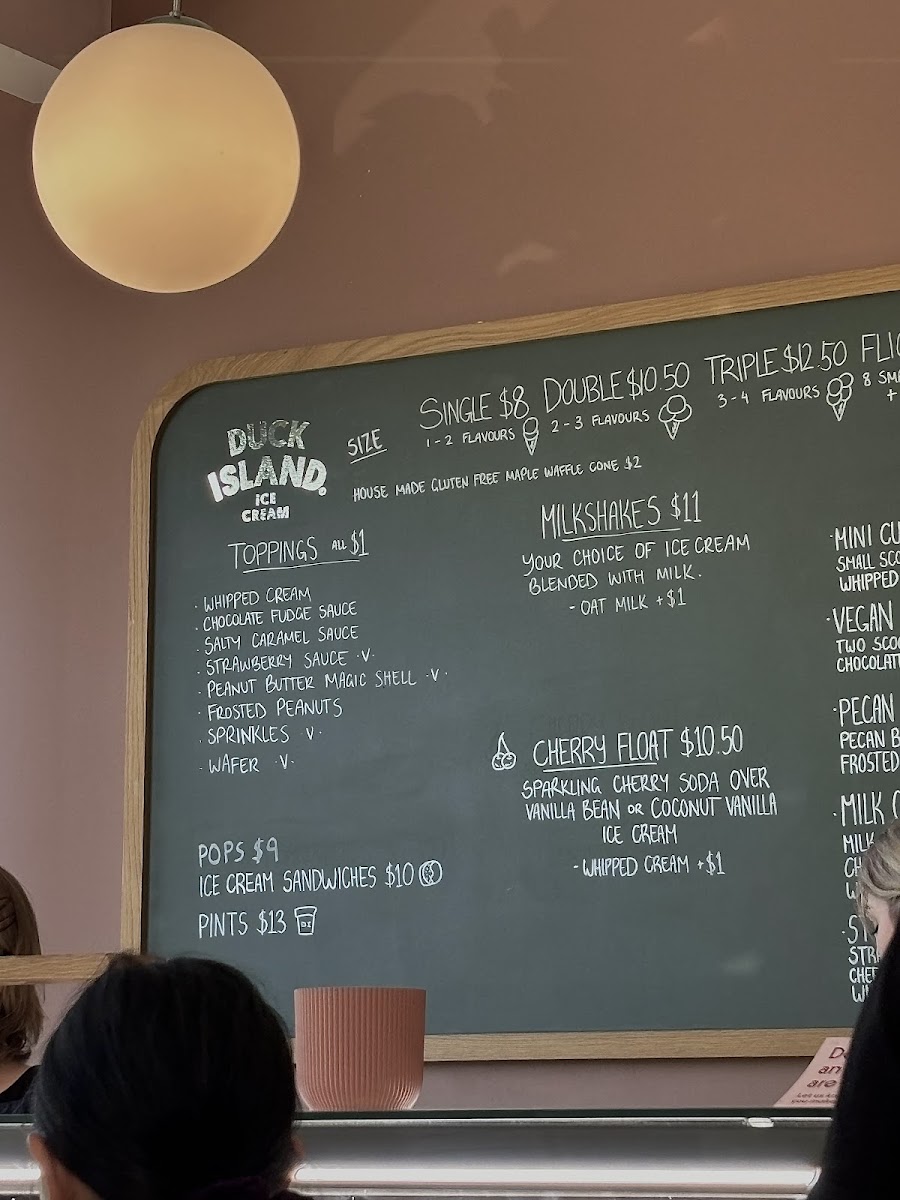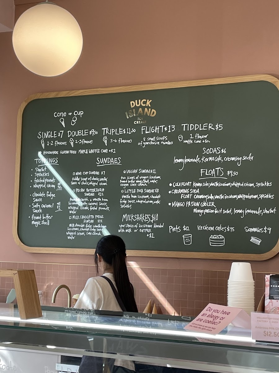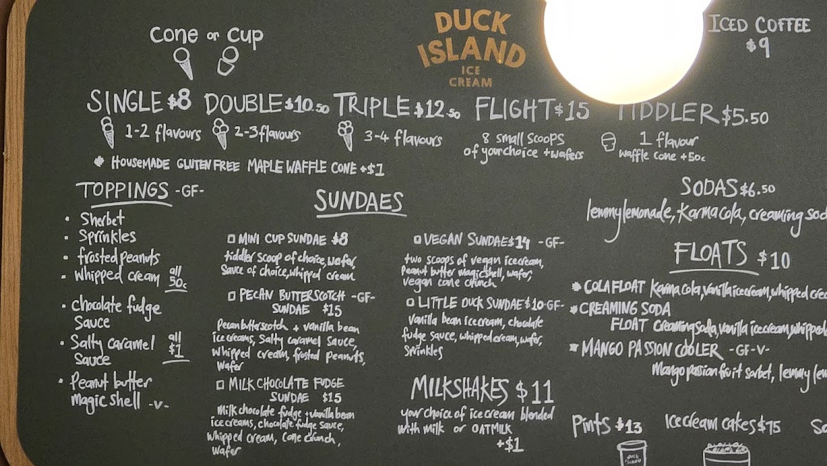 Duck Island Ice Cream offers a delightful and diverse menu, perfect for anyone with a sweet tooth. For sundae lovers, there’s the indulgent Omini Cup Sundae, the rich Milk Chocolate Fudge Sundae, and the vegan-friendly Ovegan Sundae, ensuring everyone finds something to enjoy. The dairy options include classics like Vanilla Bean, Pecan Butterscotch, and the crowd-pleasing Cookies & Cream Peppermint Slice. For a refreshing treat, the Ambrosia flavor is a must-try. If you're in the mood for something fizzy, the Cola Float is a nostalgic and fun choice. Additionally, the Mango Passion Cooler offers a tropical twist, combining fruity flavors for a cool, refreshing experience. The menu caters to a variety of tastes, whether you’re seeking a creamy sundae, a float, or a fruity drink, all at Duck Island Ice Cream in Takapuna.